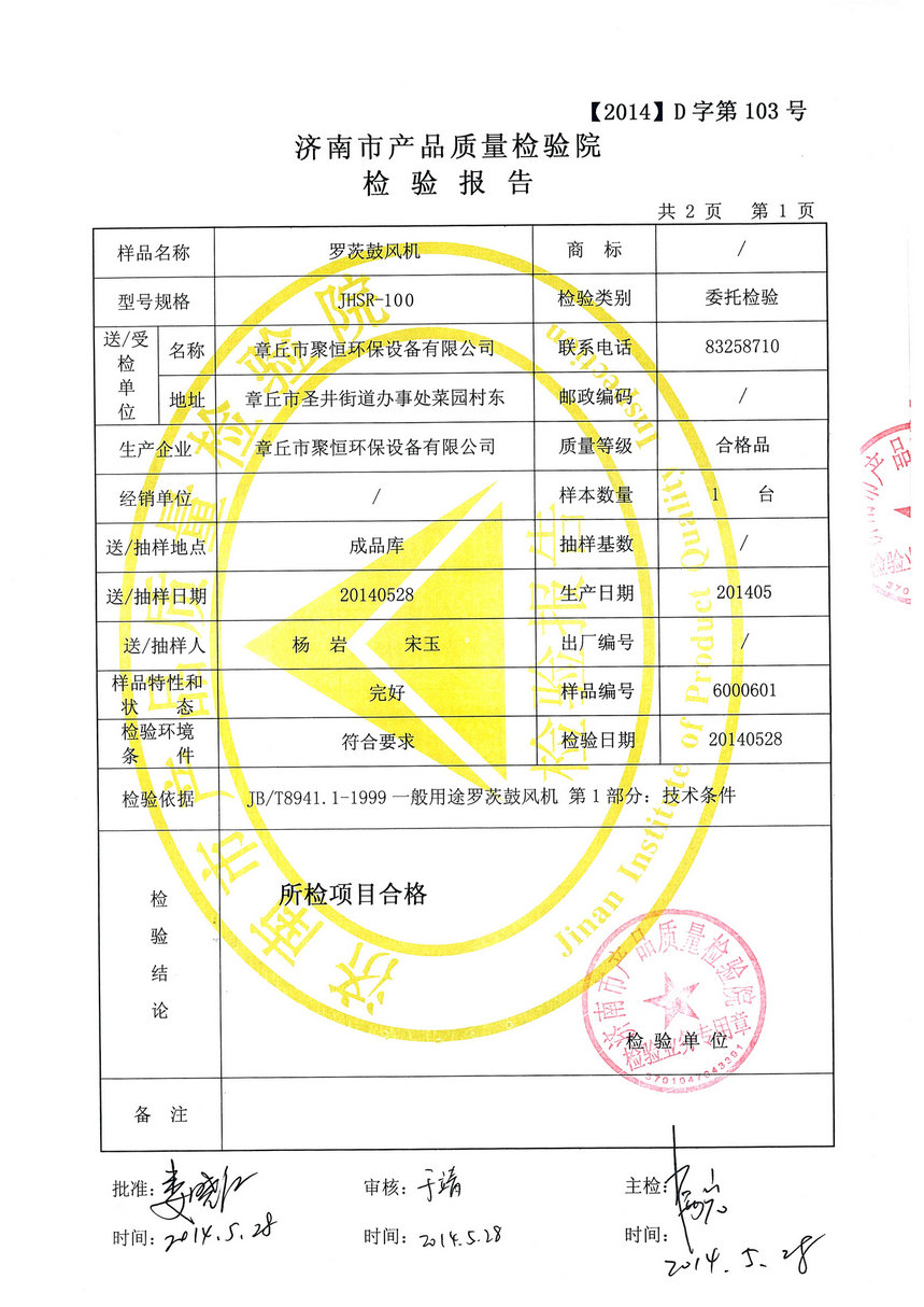 質(zhì)量檢測報告